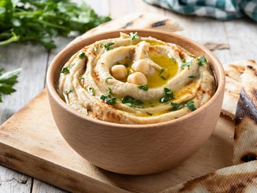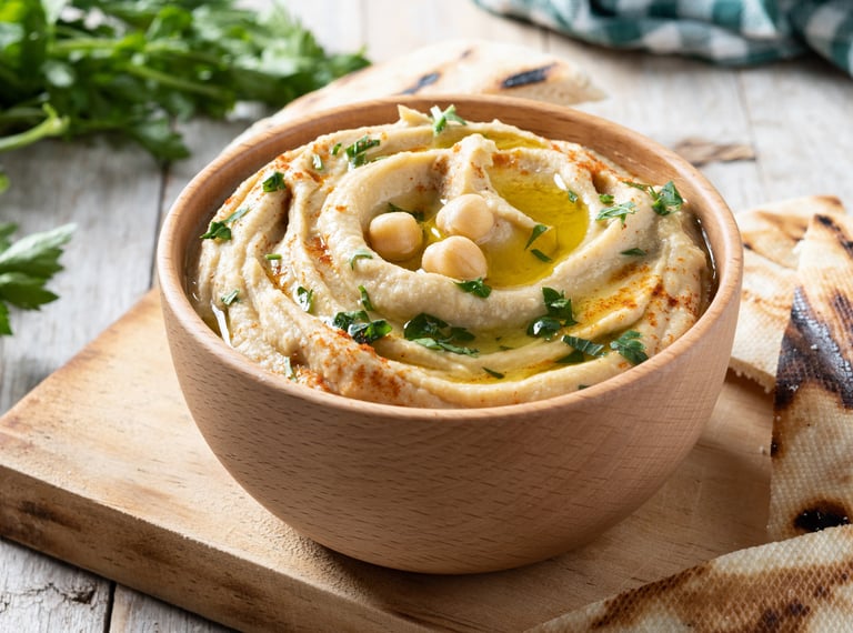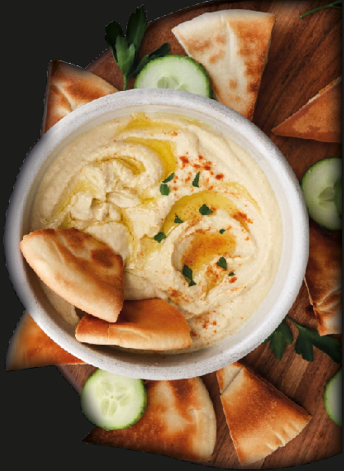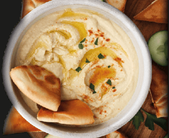 Mashed chickpeas blended with fresh garlic, tahini, and herbs.